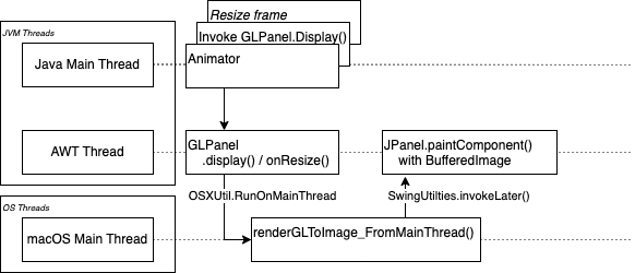 The panel is also responsible for triggering OpenGL initialization and rendering in the appropriate threads, which may depend on the running operating system.Threading on macOS